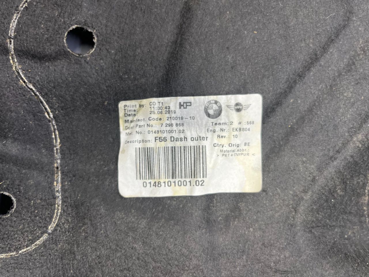 ![шумоизоляция (термозащита) Mini Cooper 3 поколение [рестайлинг] F55 2020, 1.5 л., B36 A15 A, бензин, АКПП, b71, хетчбэк 5 дв., передний привод, 7298868, 51487298868 - фото №2](https://storage.yandexcloud.net/api.filesmonster.ru/gallery/c/1568/56178f517995ded996d0315e56b62e8e/5f294d42.jpg)